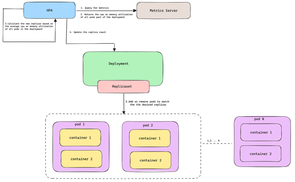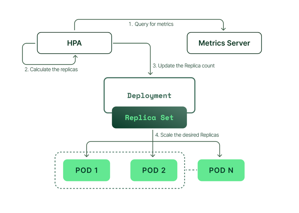 Kubernetes environments typically rely on the Horizontal Pod Autoscaler which scales pods based on metrics such as CPU utilization or custom metrics.